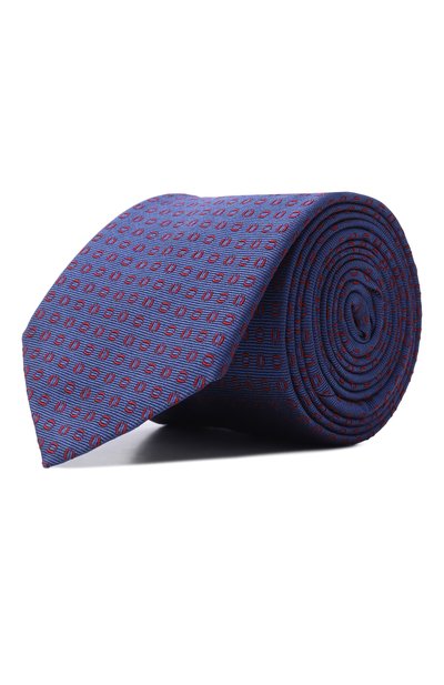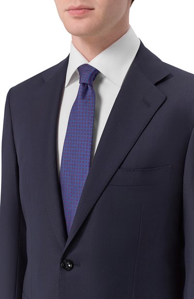 Диагональные полосы на черном галстуке средней ширины утратили привычную четкость. Геометричный рисунок складывается из миниатюрных голубых клеток разного размера, поэтому кажется размытым. Узор выткали на плотной шелковом жаккарде, который помогает аксессуару хорошо держать форму.