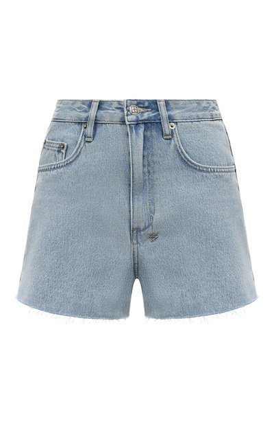 Голубые шорты выглядят так, будто их выполнили из джинсов, обрезанных вручную. Такое впечатление создают необработанные края, на которых со временем образуется неравномерная бахрома. Модель изготовили из мягкого плотного хлопка. Брендированную нашивку разместили на накладном кармане сзади.