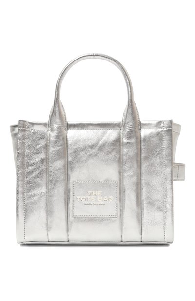 Марк Джейкобс добавил прямоугольной сумке The Tote Bag металлизированный блеск, выбрав для ее изготовления мягкую эластичную кожу с серебристым ламинированным покрытием. Аксессуар с двумя короткими ручками сверху и одной на боковой панели дополнили съемным плечевым ремнем. В изделие с фирменным патчем спереди поместятся планшет, зонт, кошелек, смартфон.
