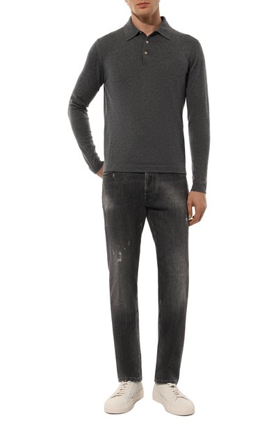 Черные джинсы выполнили из особенно плотного прочного хлопка, который хорошо держит заданную форму. Детали кроя визуально очертили коричневой строчкой, а на одном из задних карманов поставили максимально деликатный штрих в виде бирки. Такое выдержанное в классическом стиле изделие найдет общий язык и с футболкой, и с неформальной рубашкой, и с элегантным пуловером.