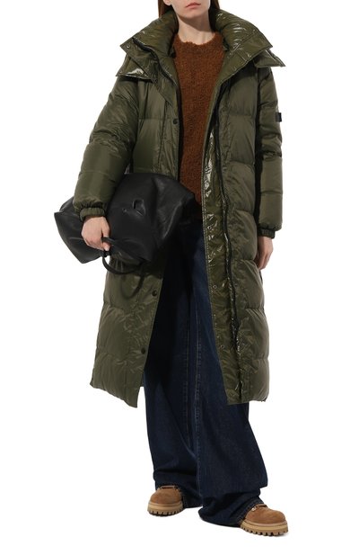 Бежевая удлиненная куртка выручит во время осеннего ненастья и в первые морозы. Стеганую модель сшили из прочного непродуваемого текстиля с водоотталкивающим покрытием, поэтому она не промокнет под моросящим дождем и мокрым снегом. Еще комфортнее утепленное изделие делают капюшон с отделкой из пушистого меха песца и штормовая планка, скрывающая молнию.