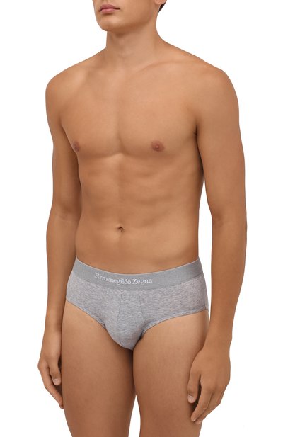 Меланжево-серые брифы с классической посадкой сшиты из приятного на ощупь хлопкового джерси. Эластичный гипоаллергенный материал отлично пропускает воздух, а плоские эргономичные швы не раздражают кожу. Трусы дополнены широким поясом-резинкой с логотипом бренда.
