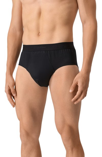 Черные брифы выполнили из эластичного джерси на основе отборного длинноволокнистого хлопка, который создает оптимальный для тела микроклимат и спорит в нежности с шелком. Широкая резинка с жаккардовым логотипом марки плотно и вместе с тем мягко облегает бедра. В комплекте – еще одни такие же трусы.
