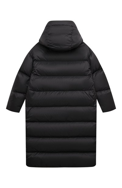 Черную стеганую куртку сшили из прочного нейлона с водоотталкивающим покрытием, защищающим от ветра, дождя и снега. Чтобы в модели с регулируемым поясом-кулиской было комфортно в мороз, ее утеплили переработанным пухом. Его получили из одежды от предыдущих коллекций, обработали антибактериальными средствами и просушили. Изделие с боковыми карманами и глубоким капюшоном застегивается на молнию.