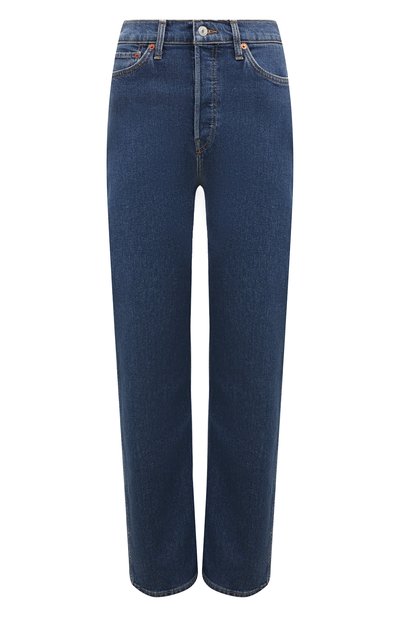Прямые синие джинсы с завышенной талией, вдохновленные одеждой из 1990-х, сшили из прочного денима с добавлением стрейчевых волокон. Выверенный крой, тщательная подгонка деталей и многократные замеры в процессе пошива сделали посадку модели идеальной. Чтобы придать изделию неравномерный оттенок, его несколько раз постирали в готовом виде с абразивами и деликатно отбеливающими веществами.