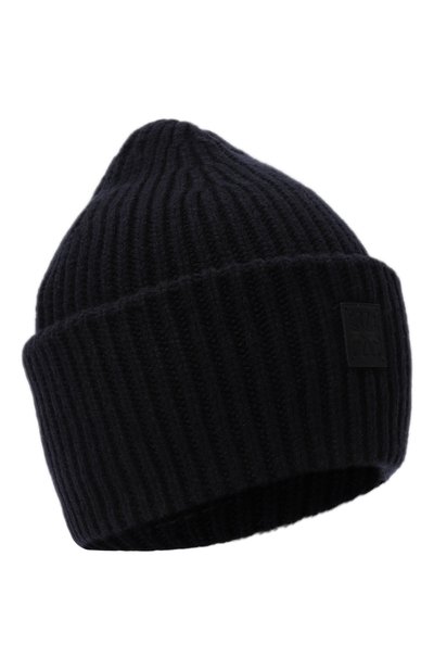 Темно-синюю шапку связали из мягкой шерстяной пряжи. Фактурный материал отлично сохраняет тепло, но не мешает воздуху циркулировать, поддерживая комфортный микроклимат. Нити переплели резинкой, поэтому модель с широким отворотом плотно облегает голову, не пропуская ветер внутрь.