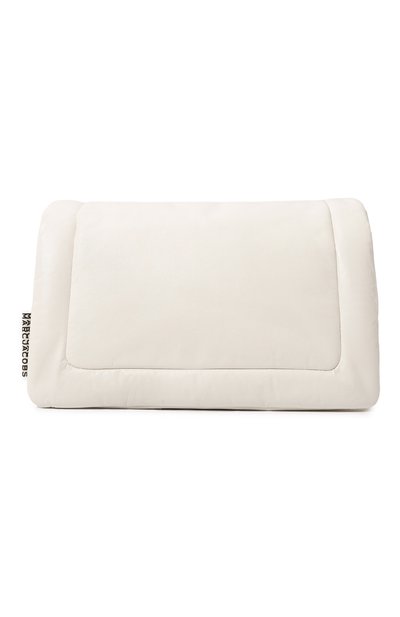 Эта объемная белая сумка – обновленная версия модели Pillow, впервые представленной Марком Джейкобсом в 2019 году. Для изготовления аксессуара с серебристой удлиненной ручкой-цепочкой использовали гладкую мягкую кожу с деликатным блеском. Заднюю панель украсили патчем с тисненым брендированным паттерном, стилизованным под штрихкод, ко торому вторит текстильная этикетка сбоку. В основное отделение с карманом на молнии поместятся кошелек, смартфон и футляр с очками.