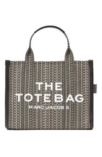 Для пошива темно-бежевой сумки The Tote Bag Марк Джейкобс выбрал плотный прочный текстиль с серым жаккардовым паттерном, в котором считывается логотип марки. В тон ему выполнили задающий четкую форму кожаный кант, а на контрасте сыграли крупной брендированной надписью. Внутрь аксессуара со съемным плечевым ремнем поместятся планшет, кошелек, смартфон и любимый аромат.