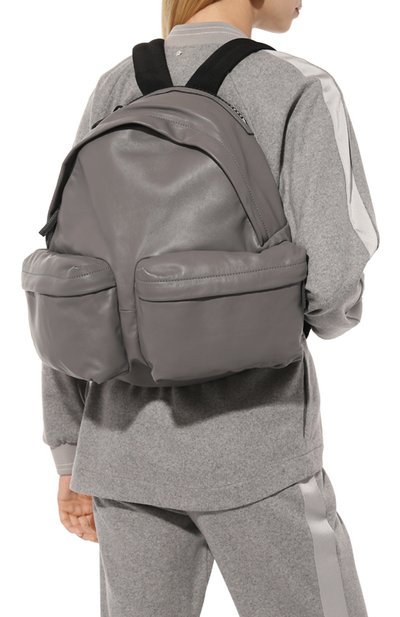 Марк Джейкобс оставил молнии на этом рюкзаке открытыми, превратив их в графичные акценты на верхней панели и гипертрофированном наружном кармане. Декором стал и крупный кожаный патч, стилизованный под бирку с информацией об аксессуаре и бренде. Для пошива модели использовали т онкий прочный нейлон графитово-серого оттенка. Внутрь поместятся ноутбук, складной зонт и кошелек.
