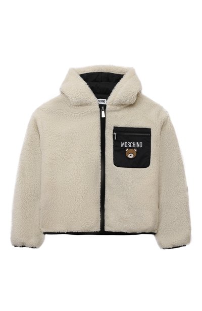 Белую куртку выполнили из мягкого плюша. Этот фактурный материал напоминает овчину, но превосходит ее в легкости, а на ощупь он максимально нежный. Модель утеплили слоем синтепона, а подклад изготовили из нейлона, сформировав дополнительный ветрозащитный слой. Изделие с нагрудн ым карманом, акцентированным вышитым логотипом и фирменным патчем, застегивается молнией.