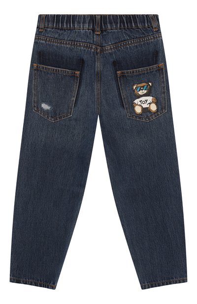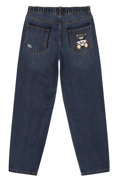 Заломы и потертости на эластичном хлопке создают впечатление, что синие джинсы прямого кроя пережили много приключений. Винтажный вид усиливают небольшие вставки спереди рядом с коленями, а патч в виде фирменного медведя на заднем кармане кажется заплатой.
