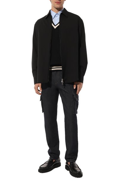 Слегка зауженные темно-синие джинсы с отворотами сшили вручную из мягкого премиального денима. Ткань соткали на традиционных станках, очень плотно стягивающих нити, поэтому она получилась особенно прочной. Лаконичную модель с прорезными задними карманами дополнили эластичной вставкой на поясе, чтобы сделать посадку на та лии максимально комфортной.