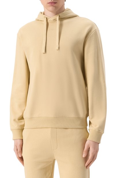 Спортивный костюм Dapodayote выполнили из трикотажа френч терри на основе органического хлопка. Худи с регулируемым капюшоном и джоггеры с двумя карманами украсили логотипом марки.