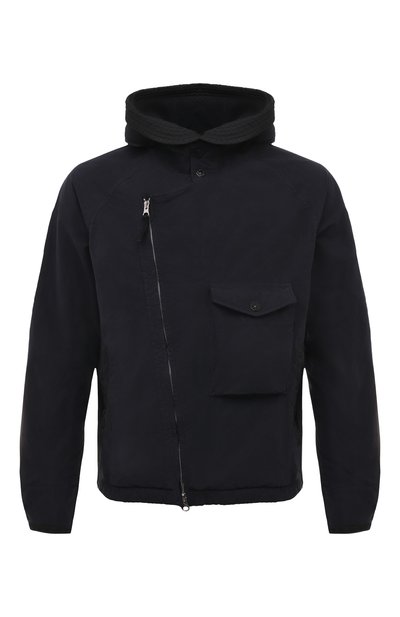 Темно-синюю куртку с крупным накладным карманом спереди дополнили асимметричной молнией. Для пошива модели с брендированной нашивкой на левом рукаве использовали непродуваемую фирменную ткань David Light-TC, произведенную из японских нейлоновых нитей с сечением в виде звезды. Изделие в готовом виде окрасили под давлением и температуре 130 градусов, дополнив состав водоотталк ивающей пропиткой.
