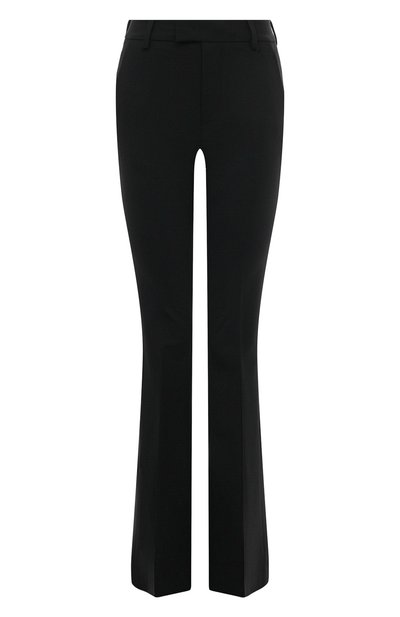 Черные расклешенные брюки с высокой посадкой легко станут фаворитом базового гардероба. Они будут уместно смотреться и в офисе, и на торжественном мероприятии или вечеринке: достаточно сменить рубашку или жакет на яркий топ или блузу. Модель сшили из тонкой костюмной шерсти, которая поддерживает оптимальный микроклимат, не мнется и не сковывает движения.