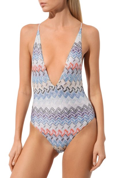 Кремовый слитный купальник с открытой спиной и глубоким V-образным вырезом сшили из нежной эластичной микрофибры. Модель из такого быстросохнущего материала облегает фигуру, словно вторая кожа, а отрегулировать посадку помогут две широкие ленты, завязывающиеся на шее сзади. Спереди изделие украсили вставкой из тонкого тюля с вышивкой полупрозрачными бусинами, выполненной вручную в сутажной технике.