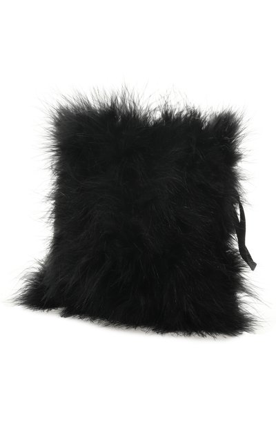 Лаконичную черную сумку сшили из мягкого плюша, который напоминает кроличий мех. Легкий блеск нежного пушистого материала поддержали круп ным бантом из стразов, мерцающих при малейшем движении. В аксессуар с двумя ручками средней длины поместятся носовой платок, гигиеническая помада и смартфон.