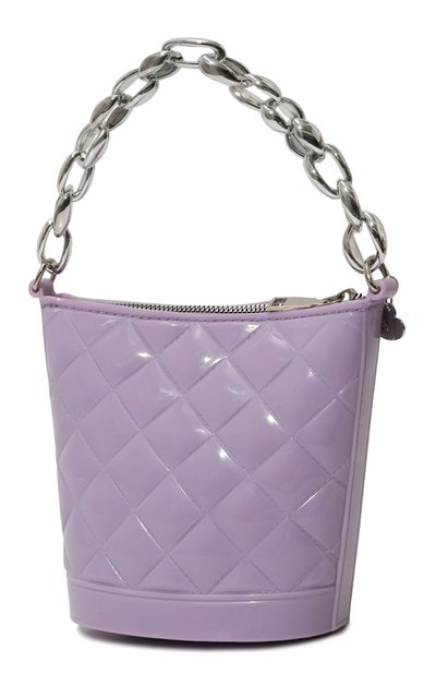 Голубая стеганая сумка с эластичной широкой ручкой сшита из мягкого фактурного текстиля. Во внутреннее отделение поместятся телефон, расческа и заколки. Однотонная модель украшена спереди крупным бархатным бантом и перламутровой пуговицей с кристальной отделкой.