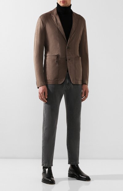 Накладные карманы с фигурными клапанами придали однобортному пиджаку черты стиля милитари. Для пошива модели с полуподкл адом использовали плотную фактурную шерсть с добавлением гладкого шелка и нежного кашемира, поэтому она хорошо удерживает тепло и не деформируется со временем.