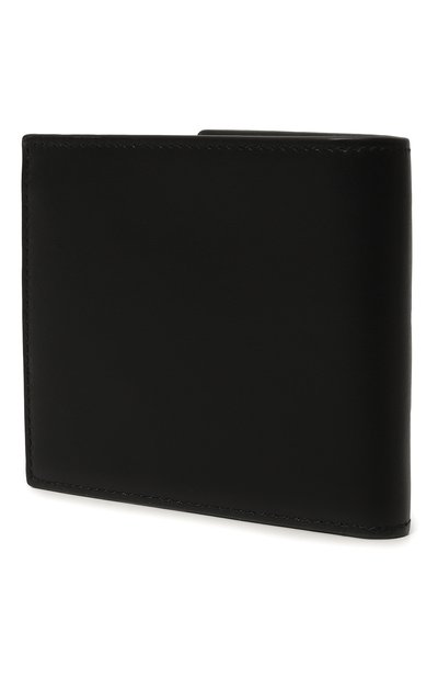 Черное портмоне с вос емью слотами для кредитных карт, отсеками для чеков и двумя отделениями для купюр выполнено вручную из прочной гладкой кожи с деликатным блеском. Лаконичный однотонный аксессуар украшен спереди крупным белым графичным логотипом VLTN.