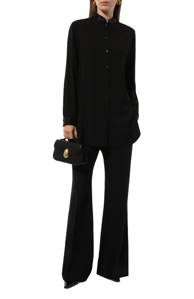 Чернильно-синяя удлиненная блуза дополнит и строгий офисный, и менее формальный гардероб. Ее сшили из дышащей вискозы с атласным блеском, которая красиво драпируется на широких рукавах. Лаконичность изделия не нарушают даже пуговицы, обтянутые тканью. Свободный силуэт позволят вписывать модель в сложные многослойные образы, как пр едлагают наши стилисты.