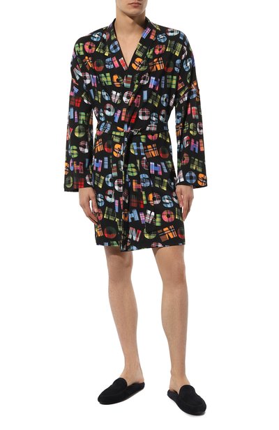 Черный халат с капюшоном украсили аппликацией в виде знакового медвежонка и вышитым контрастным логотипом. Для пошива модели с поясом использовали мягкую махровую ткань из отборного тщательно очищенного хлопка, обеспечивающего комфортный микроклимат. Материал быстро впитывает влагу и хорошо пропускает воздух, позволяя коже дышать.