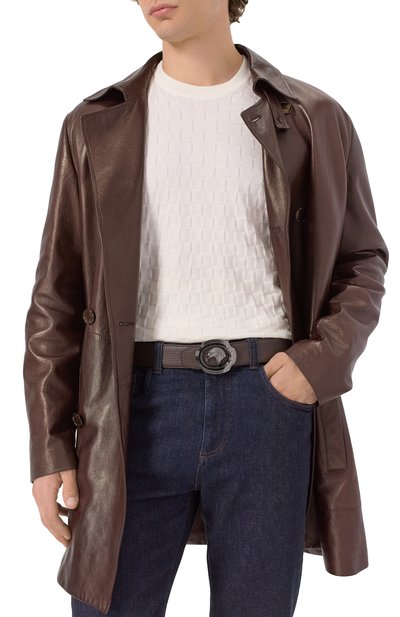 Ремень с кобурной пряжкой в виде эмблемы Royal Eagle может стать акцентом в образе. Аксессуар средней ширины выполнили из крупнозернистой кожи.