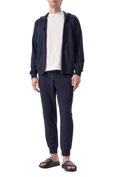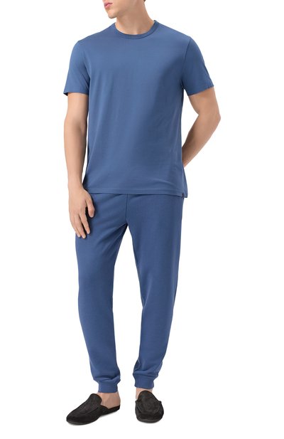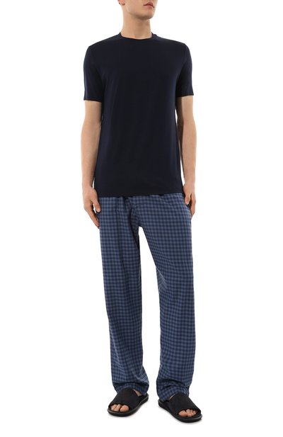 Синие клетчатые брюки сохранят ощущение комфорта во время сна и домашнего отдыха. Для изготовления модели прямого, не сковывающего движения кроя использовали мягкую хлопковую фланель, поддерживающую оптимальный микроклимат. Эластичный пояс с регулируемой кулиской застегивается пуговицей.