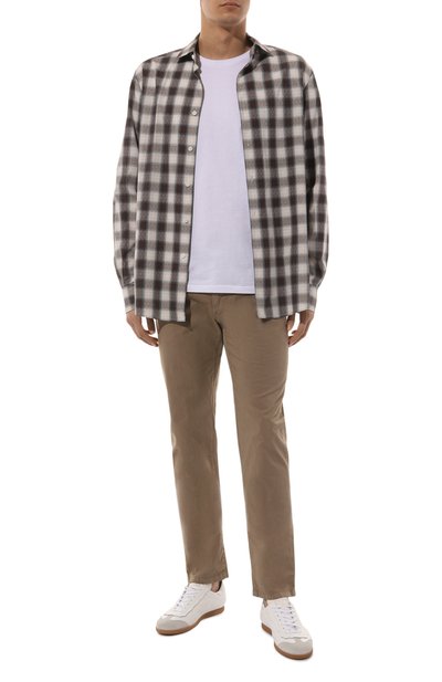 Для пошива клетчатой рубашки использовали чистый хлопок. Модель на перламутровых пуговицах составит гармоничный дуэт и с джинсами, и с более строгими брюками.