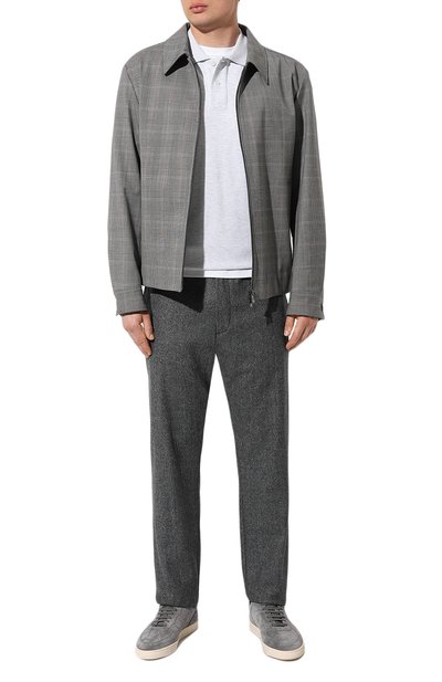 Для изготовления серого поло использовали мягкое джерси из отборного хлопка, не уступающего в гладкости и нежности шелку. Модель из такого материала почти ощущается на теле и хорошо пропускает воздух, поддерживая комфорт в течение дня. Отложной воротник подчеркнули контрастными узкими полосками.
