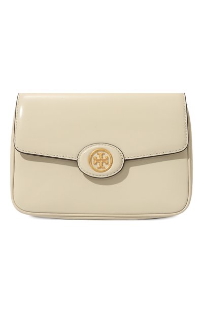 Сумку Robinson Spazzolato нейтрального кремового оттенка выполнили из мягкой, отшлифованной до блеска кожи. Лаконичный силуэт аксессуара Тори Берч компенсировала золотистой объемной эмблемой на откидном клапане. В модель с регулируемым плечевым ремнем и внутренним карманом на молнии поместятся кошелек, смартфон, ключи и паспорт.