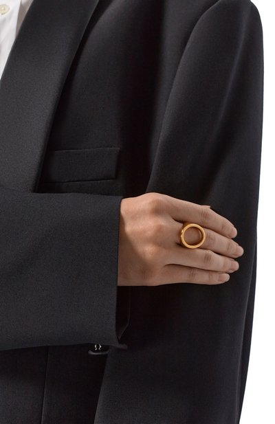 Это кольцо стилизовали под печатку, но отказались от привычного для таких аксессуаров декора, чтобы сфокусировать внимание на форме. Знаковый для марки мотив в виде числового кода спрятали, разместив его с внутренней стороны шинки. Модель выполнили из ювелирного сплава с гальваническим покрытием серебром.
