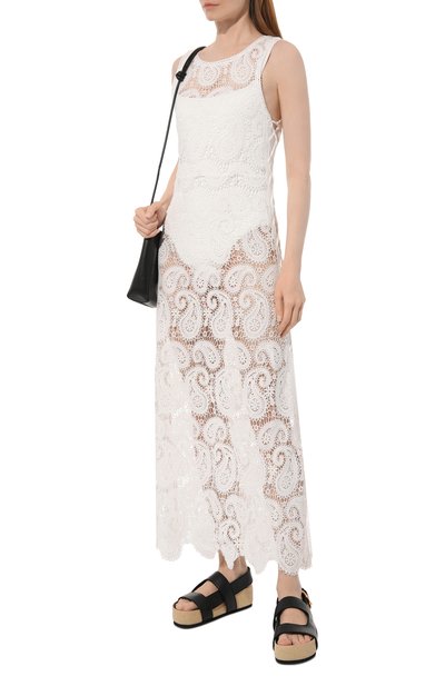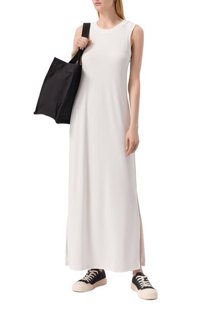 Белое однотонное миди-платье без рукавов словно создано для жаркой погоды. Модель с высокими разрезами по бокам и короткой пуговичной планкой под круглой горловиной сшили из ультратонкого легкого льна. Прочный материал поддерживает оптимальный микроклимат, хорошо пропускает воздух и отводит от тела лишнюю влагу.