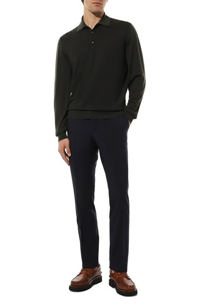 Поло оттенка хаки получилось особенно комфортным и легким за счет нежного тонкого кашемира и гладкого шелка в составе пряжи. Модель с фактурным узором хорошо сохраняет тепло и не препятствует циркуляции воздуха, обеспечивая оптимальную терморегуляцию. Пуллер короткой молнии, стилизованный под монограмму SR, изготовили из оцинкованного палладия.