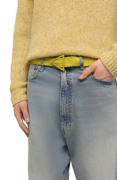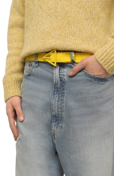 Яркий оранжевый цвет и фирменная техника intrecciato сделают этот ремень акцентной деталью любого комплекта. Аксессуар с треугольной узкой пряжкой сплели из узких полос прочного, стилизованного под матовую кожу текстиля.