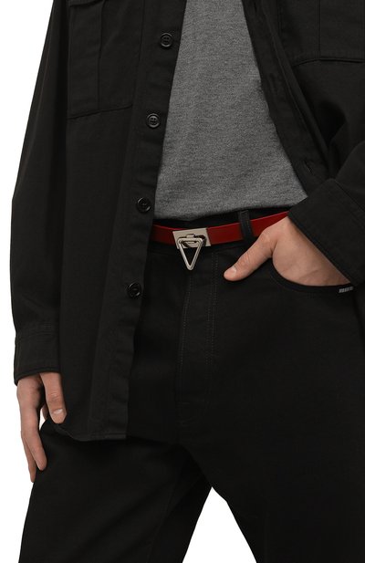 Зеленый ремень — верный способ добавить образу красок. Для изготовления модели использовали прочный матовый полимер, который не требует специального ухода и надолго сохраняет безупречный внешний вид. Аксессуар застегивается кобурной пряжкой в виде знакового треугольника.