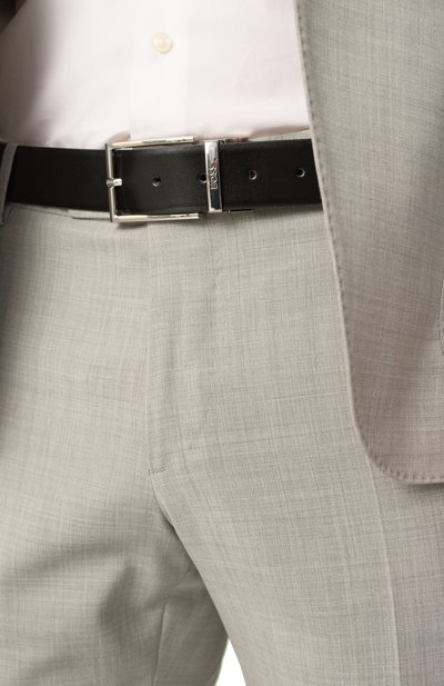 Черный ремень получился универсальным. Его лаконичность лишь немного нарушает фирменная трехцветная заклепка на шлевке. В производстве аксессуара использовали гладкую итальянскую кожу, обработанную по высоким экологическим стандартам. Модель дополнили прямоугольной металлической пряжкой с выгравированным логотипом.