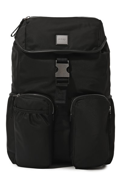 Текстиль, из которого выполнили этот рюкзак с регулируемыми лямками и эргономичной спинкой, на 60% состоит из переработанного полиэстера. В основном отделении, затягивающемся шнуром с брендированным фиксатором, предусмотрели внутренний карман на молнии. Еще два расположили на передней панели, а один прячется в клапане, котор ый застегивается серебристой пряжкой. В боковых отсеках удобно разместятся зонт и бутылка воды.
