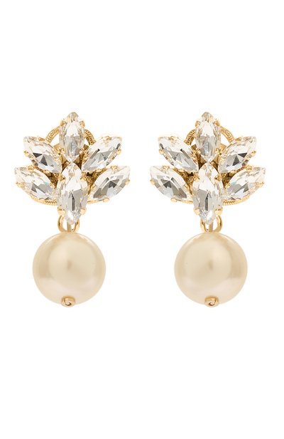 Эти небольшие серьги органично впишутся и в повседневный, и в нарядный образ. Для изготовления модели использовали прочный ювелирный сплав с гальваническим покрытием из желтого золота. Основание в виде цветка с лепестками из сияющих кристаллов горного хрусталя дополнили перламутровой подвеской, стилизованной под крупную жемчужину.