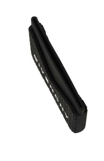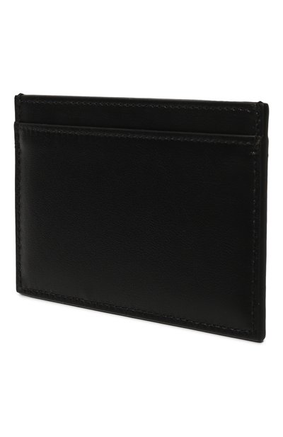 Черный футляр стал идеальным фоном для крупной серебристой монограммы Кассандра. Для создания картхолдера использовали мягкую прочную кожу, устойчивую к потертостям и царапинам. Аксессуар с четырьмя слотами для банковских карт и отделением для чеков поместится во внутреннем кармане пиджака.
