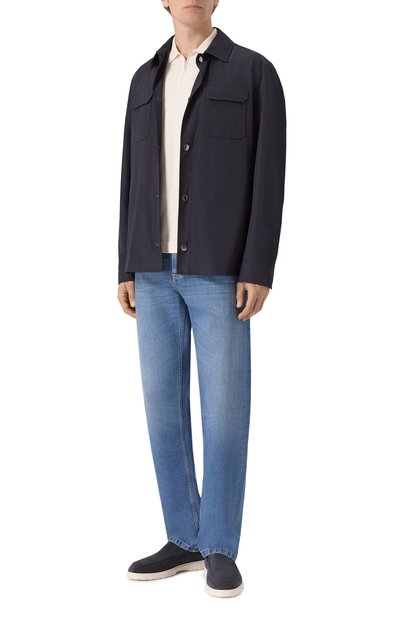 Черные пенни-лоферы сшили из матовой оленьей кожи с характерной зернистой фактурой. Этот тонко выделанный материал отличается особенной прочностью и эластичностью, поэтому пара плотно облегает стопу, не сдавливая. Модель поставили на гибкую нескользящую подошву из натурального латекса.