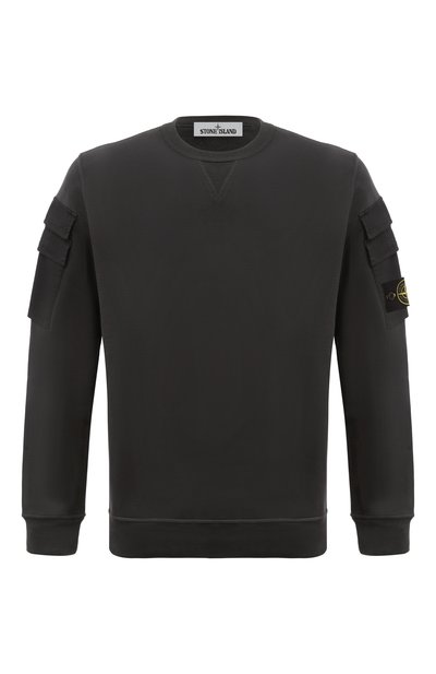 Темно-серый свитшот выполнили из мягкого дышащего футера с приятной на ощупь изнанкой. Модель удобно садится по фигуре, не сковывая движения, и обеспечивает комфортный микроклимат. Длинные рукава дополнили крупными накладными карманами с клапанами, один из которых украсили брендированной нашивкой.