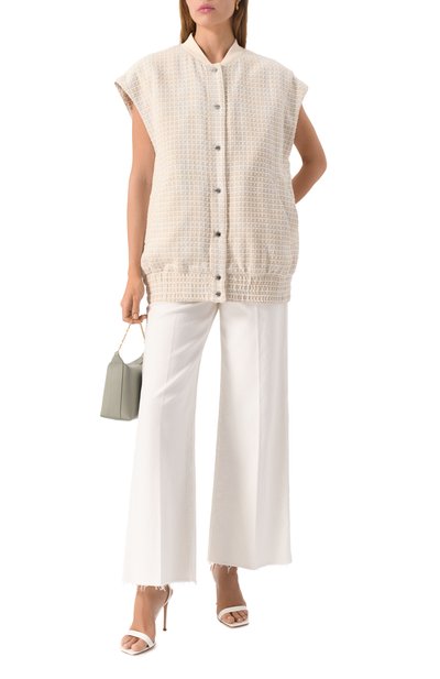 Дизайнеры марки, основанной Хуго Фердинандом Боссом, позаимствовали крой этого кремового жилета у джинсовой куртки. Модель с отложным воротником и накладными нагрудными карманами сшили из стилизованного под стриженую овчину мягкого материала. Он хорошо удерживает тепло, защищает от ветра и не теряет фактуру при намокании. Сзади и зделие украсили небольшим блестящим патчем с логотипом.