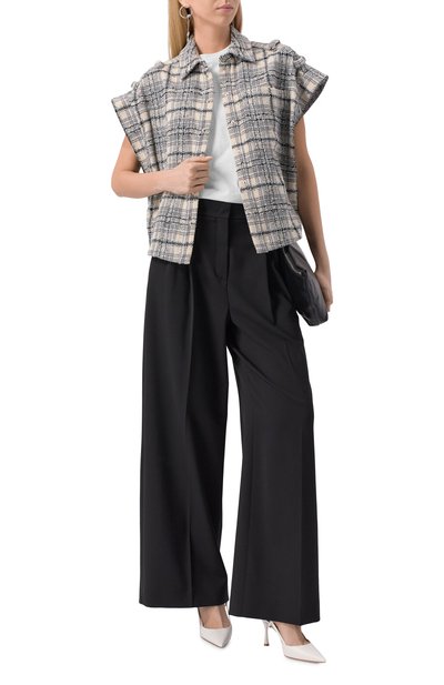 Дизайнеры марки, основанной Хуго Фердинандом Боссом, позаимствовали крой этого кремового жилета у джинсовой куртки. Модель с отложным воротником и накладными нагрудными карманами сшили из стилизованного под стриженую овчину мягкого материала. Он хорошо удерживает тепло, защищает от ветра и не теряет фактуру при намокании. Сзади изделие украсили небольшим блестящим патчем с логотипом.