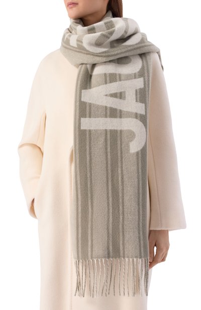 Шарф сиреневого оттенка не только согреет в холодный день, но и поможет освежить образ. Для изготовления модели использовали нежную пряжу на основе мохера с добавлением прочного полиамида и мягкой шерсти. Изделие украсили бахромой из длинных кисточек, а также черным патчем с символикой марки.