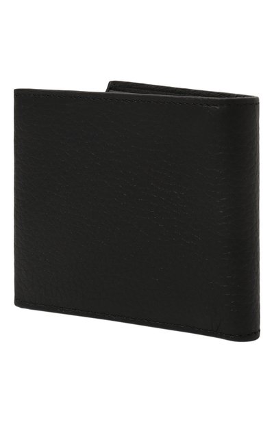 Для изготовления черного портмоне с серебристым логотипом на передней панели использовали фактурную прочную кожу, на которой не остаются царапины. Аксессуар с восемью слотами для кредитных карт, отделением для банкнот и карманом для монет дополнили полупрозрачным слотом для документов.
