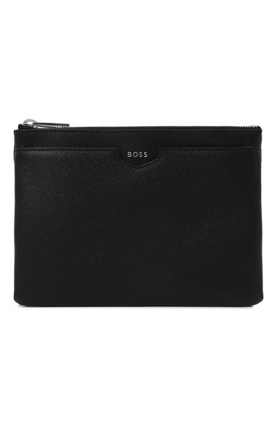 Черную сумку выполнили из особенно прочной фактурной кожи. Материал не боится царапин, хорошо держит форму и не требует сложного ухода (его достаточно протереть влажной салфеткой). Внутрь модели на молнии поместятся документы формата А5, а во внешний слот — ключи, смартфон и наушники. Широкий плечевой ремень, к которому крепится брендированная ключница, можно заменить короткой ручкой-петлей.