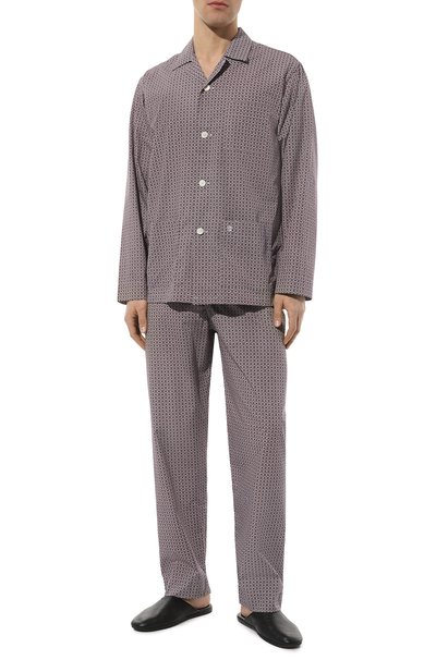Для пошива темно-синей пижамы, состоящей из рубашки с длинны ми рукавами и брюк с эластичным поясом использовали мягкую ткань из отборного тонкого хлопка. Модель не препятствует циркуляции воздуха и обеспечивает комфорт во время сна и отдыха. Принадлежность марке обозначили миниатюрной брендированной вышивкой на накладном кармане.