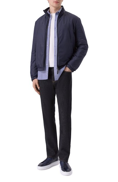 Обхват груди 118 см, обхват талии 108 см, длина рукава от плечевого шва 69 см, длина изделия по спинке 79 см. Крой Slim fit. Манжеты на пуговицах.