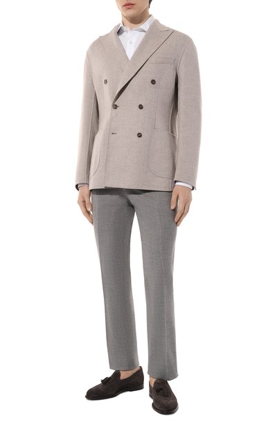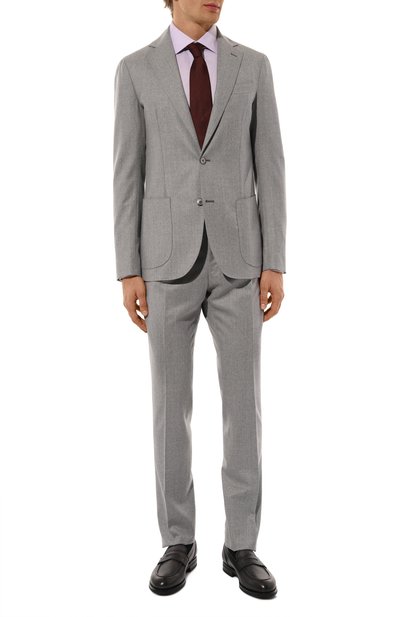 Полуприталенная сорочка в узкую бело-сиреневую полоску выглядит достаточно строго для формальных образов, а эластичностью напоминает трикотажную одежду. Мастера марки, основанной Генрихом ван Лааком, создали такой комфорт, соединив отборный хлопок со стрейчевыми нитями. Дополнительную эластичность обеспечивают выполненные вручную швы на проймах и плечах.